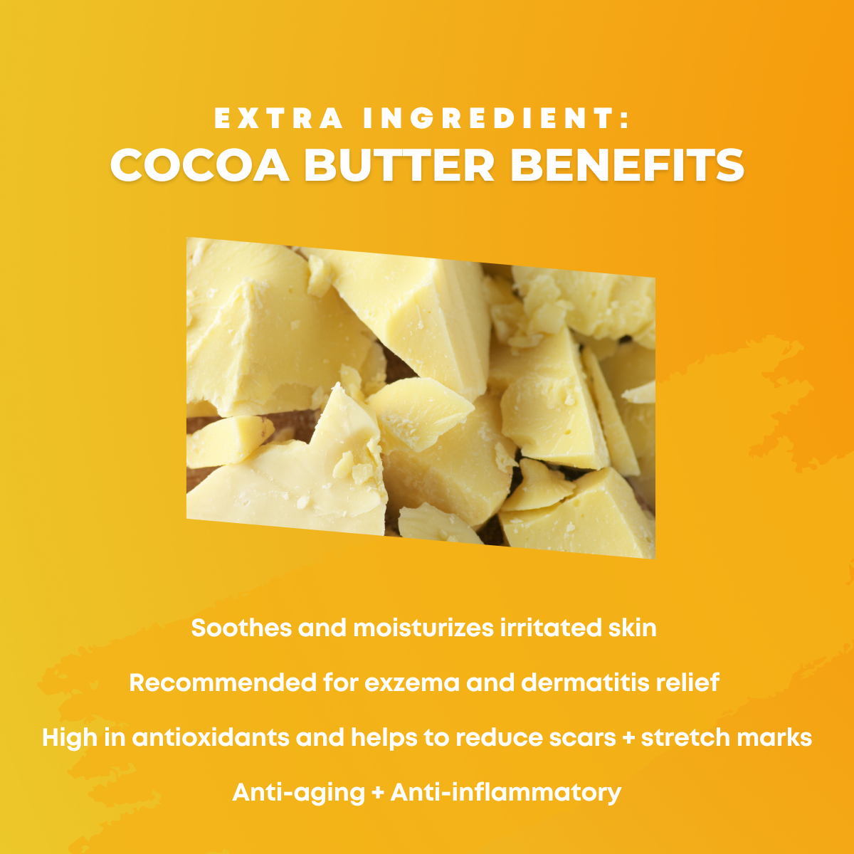 Shea Butter*, Olive Oil*, Coconut Oil*, Cocoa Butter*, Carnauba Wax*, Broad-Spectrum Hemp Distillate*, Bergamot Essential Oil*, Sweet Orange Essential Oil* and Lime Essential Oil*. *=ORGANIC
